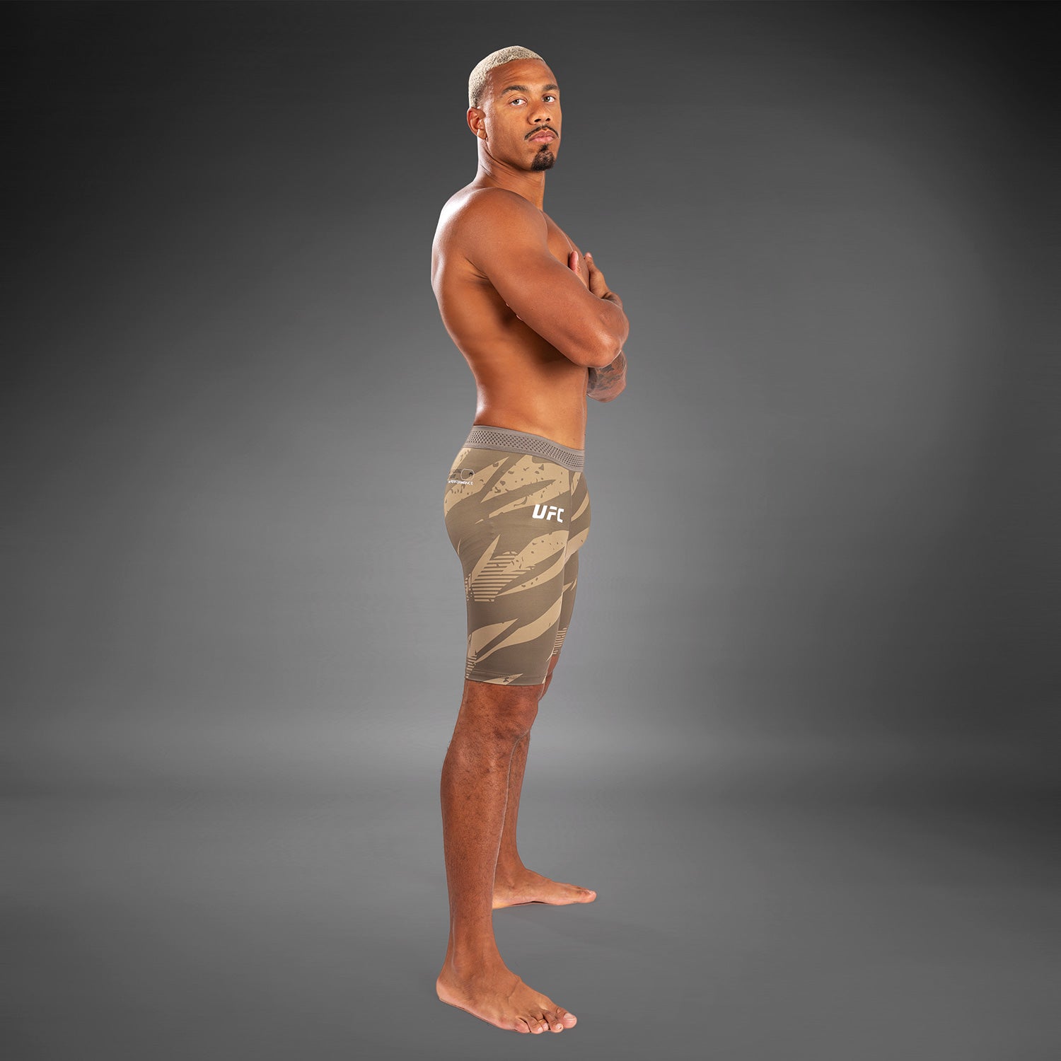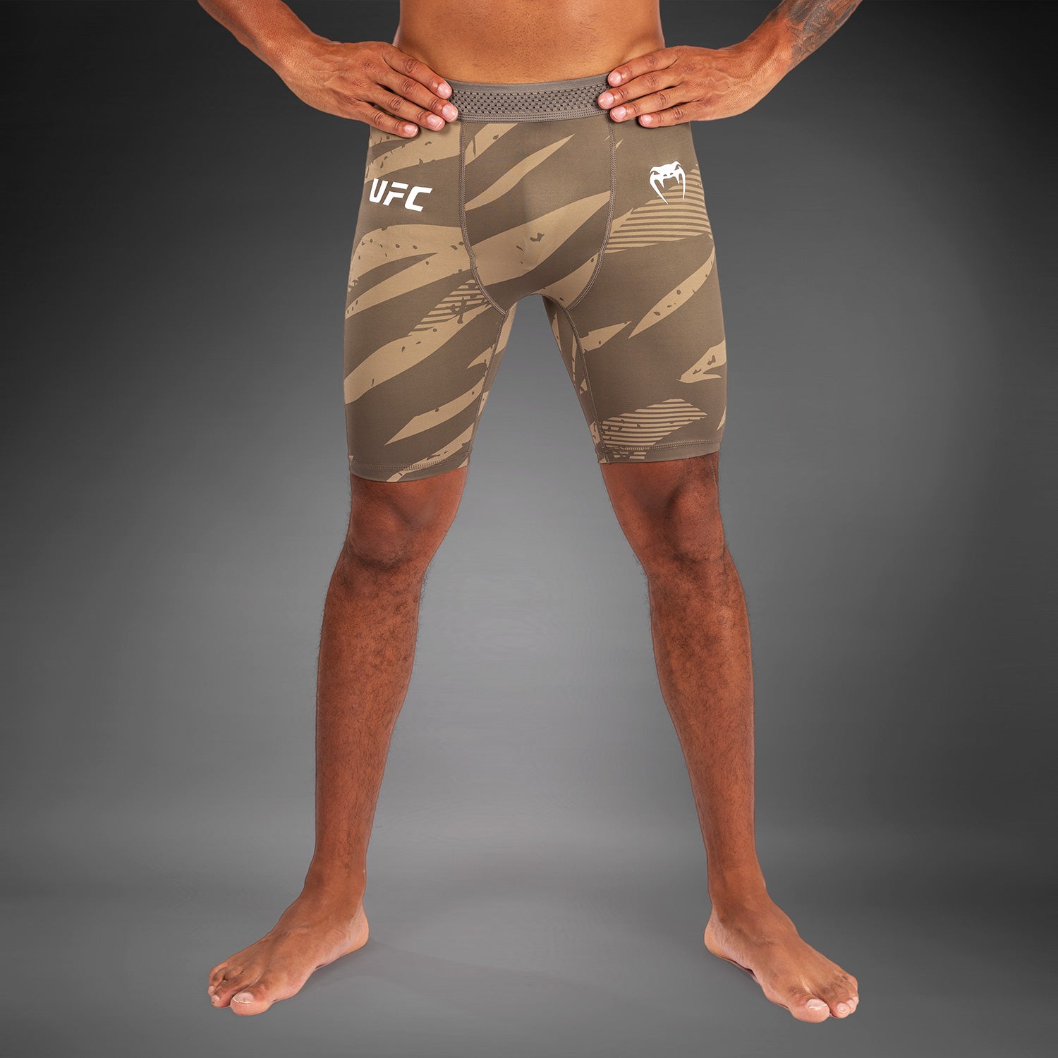 Its bold camouflage print, with black and white Venum and UFC logo detailing, is inspired by athletes who step into the Octagon, ready to strike and counter strike. Wear yours as-is or under a fight short from the same collection.