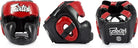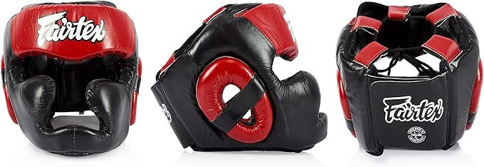 The Fairtex HG03 Diagonal Vision Sparring Headguard is designed to offer full head protection without compromising visibility. Engineered with thicker padding on the forehead, cheeks, and rear straps, ensuring maximum safety during intense sparring sessions. The innovative hook-shaped forehead design forms a triangular safety zone between the forehead and cheeks, effectively shielding key impact areas. Unlike standard headguards, the HG3 eliminates blind spots to enhance peripheral vision—giving fighters better awareness and confidence in the ring. Crafted from genuine leather with built-in ear wind shields, this headguard offers durability, comfort, and high-level performance.
