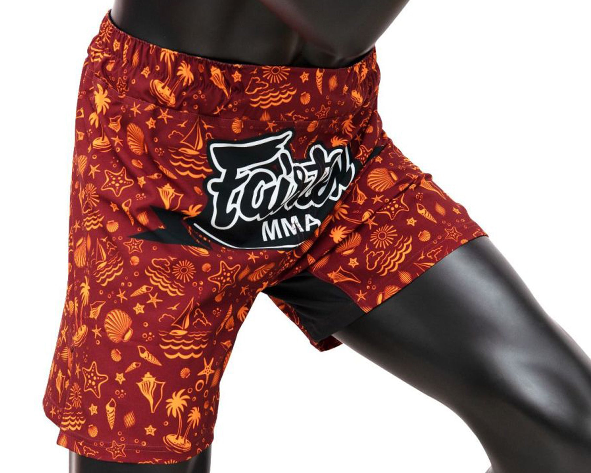ntroducing Fairtex's latest MMA shorts, designed for daily training and a casual lifestyle. Crafted from 89% polyester and 11% spandex for durability, breathability, and flexibility. The slim cut includes spandex in the crotch area for high kicks and ground combat. A 4-inch leg slit ensures unrestricted movement, while an inner drawstring and elastic waistband provide a secure and comfortable fit.