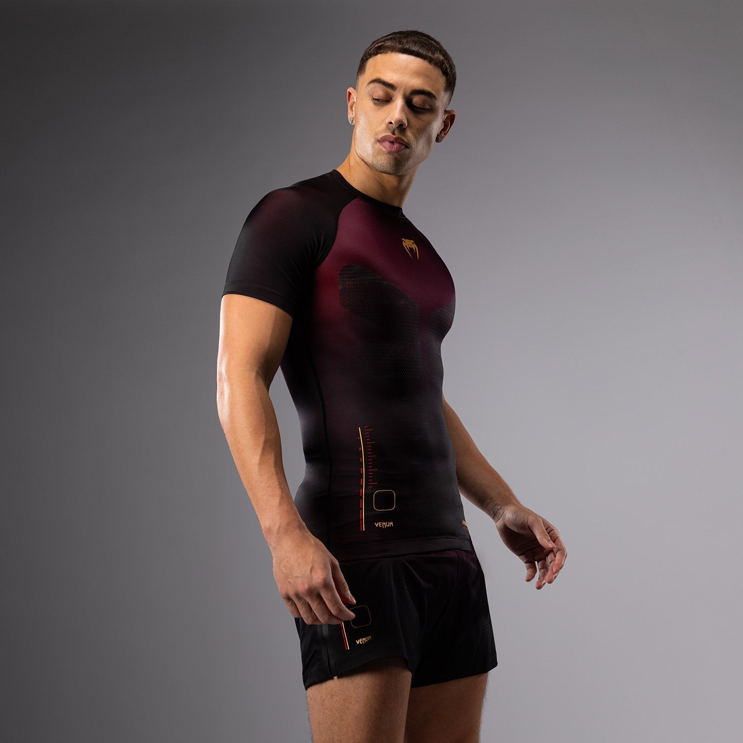 The Venum Tactical XT Short Sleeve Rashguard in Black/Burgundy/Gold serves as a second skin to provide both protection against injury and freedom of movement during no-gi jiu-jitsu and grappling. The rashguard’s compression technology also helps encourage muscular recovery.